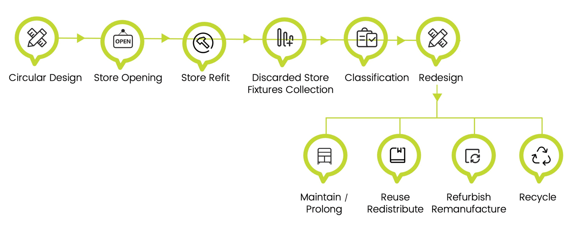 Suntop's circularity design process is essential to our commitment to creating sustainable fixtures that respect the environment and meet client needs. By embracing circular design principles, collaborating with stakeholders, and conducting life cycle analyses, we minimise waste and enhance resource efficiency in every project. Our iterative approach, including prototyping and testing, guarantees that our products are both durable and eco-friendly. Ultimately, we aim to close the loop on resource use through refurbishment and recycling, enabling brands to forge sustainable connections with their customers while contributing to a healthier planet.