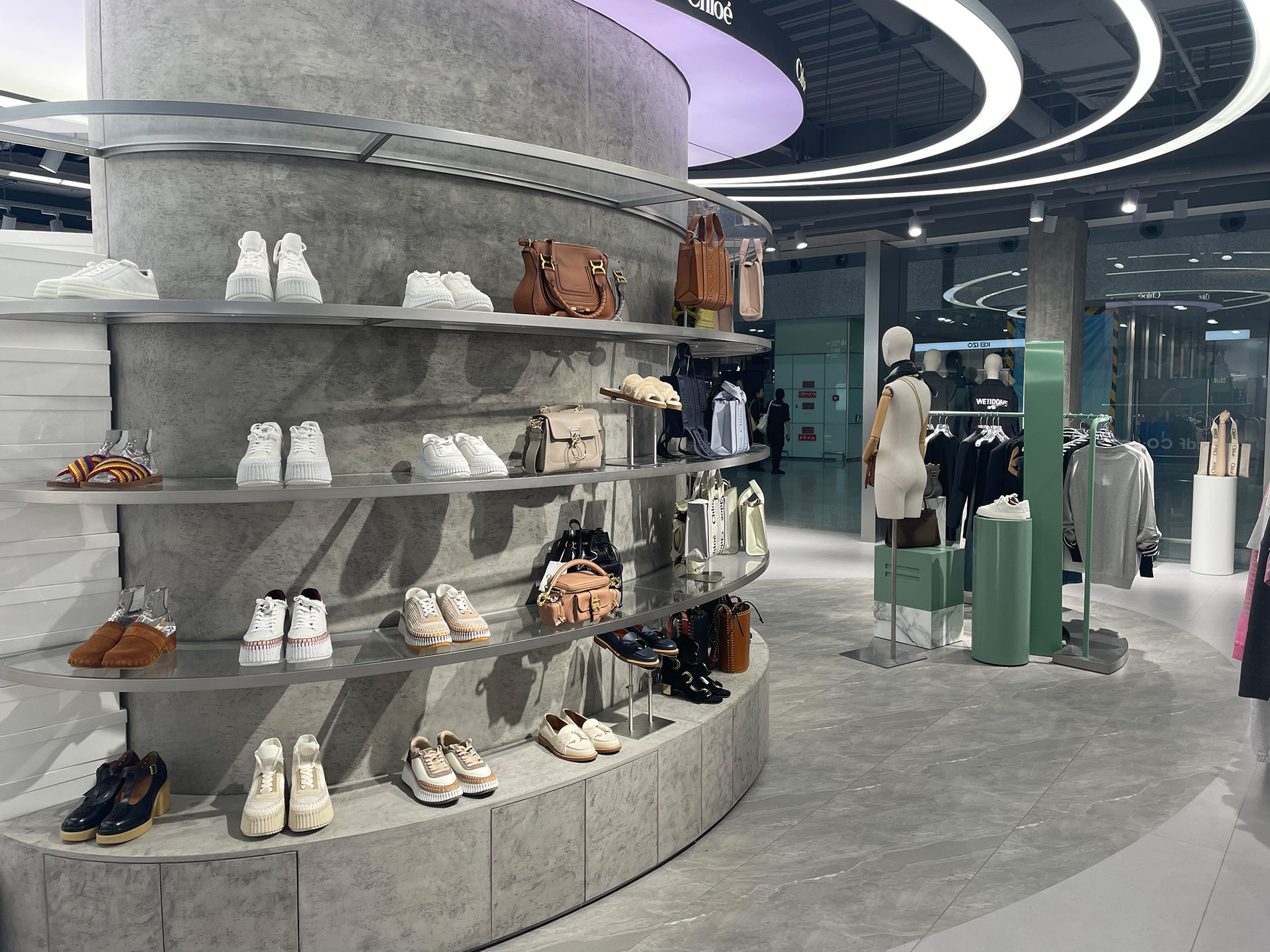 The first Co-lab duty-free store in Chengdu, Sichuan, covers a total area of approximately 170 square meters. The store features a visual design that combines a cold, metallic aesthetic with cement paint, reflecting the brand's high-end fashion and international style. The grand opening marks a perfect blend of classic and modern elements.