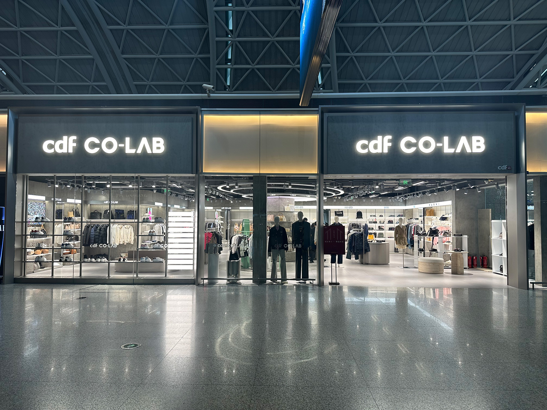 The first Co-lab duty-free store in Chengdu, Sichuan, covers a total area of approximately 170 square meters. The store features a visual design that combines a cold, metallic aesthetic with cement paint, reflecting the brand's high-end fashion and international style. The grand opening marks a perfect blend of classic and modern elements.